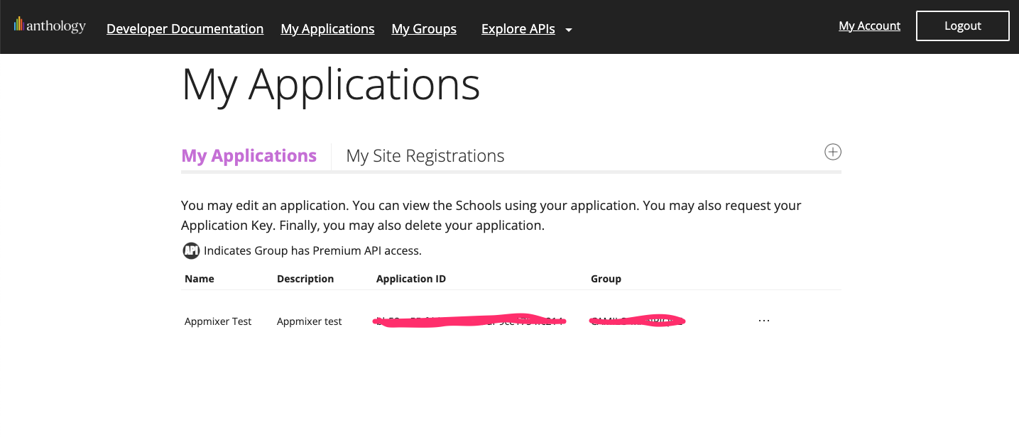 Note that listed applications have an Application ID. We will need it when we register our application in the blackboard instance. Click on the + button to create a new application. A simple form appears with your Application name and description inputs, and a domains input, for your domains. After you fill in the fields, create the new application.