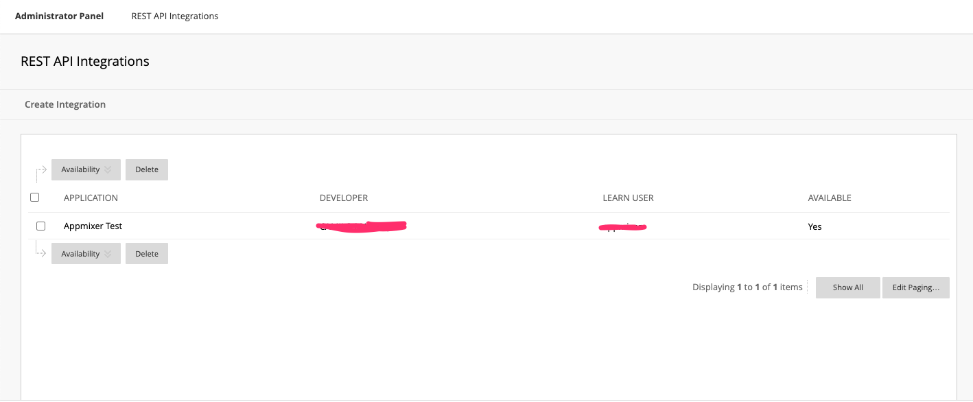 Next, you will see a list with all your API Integrations. Click on Create Integration to add a new one: