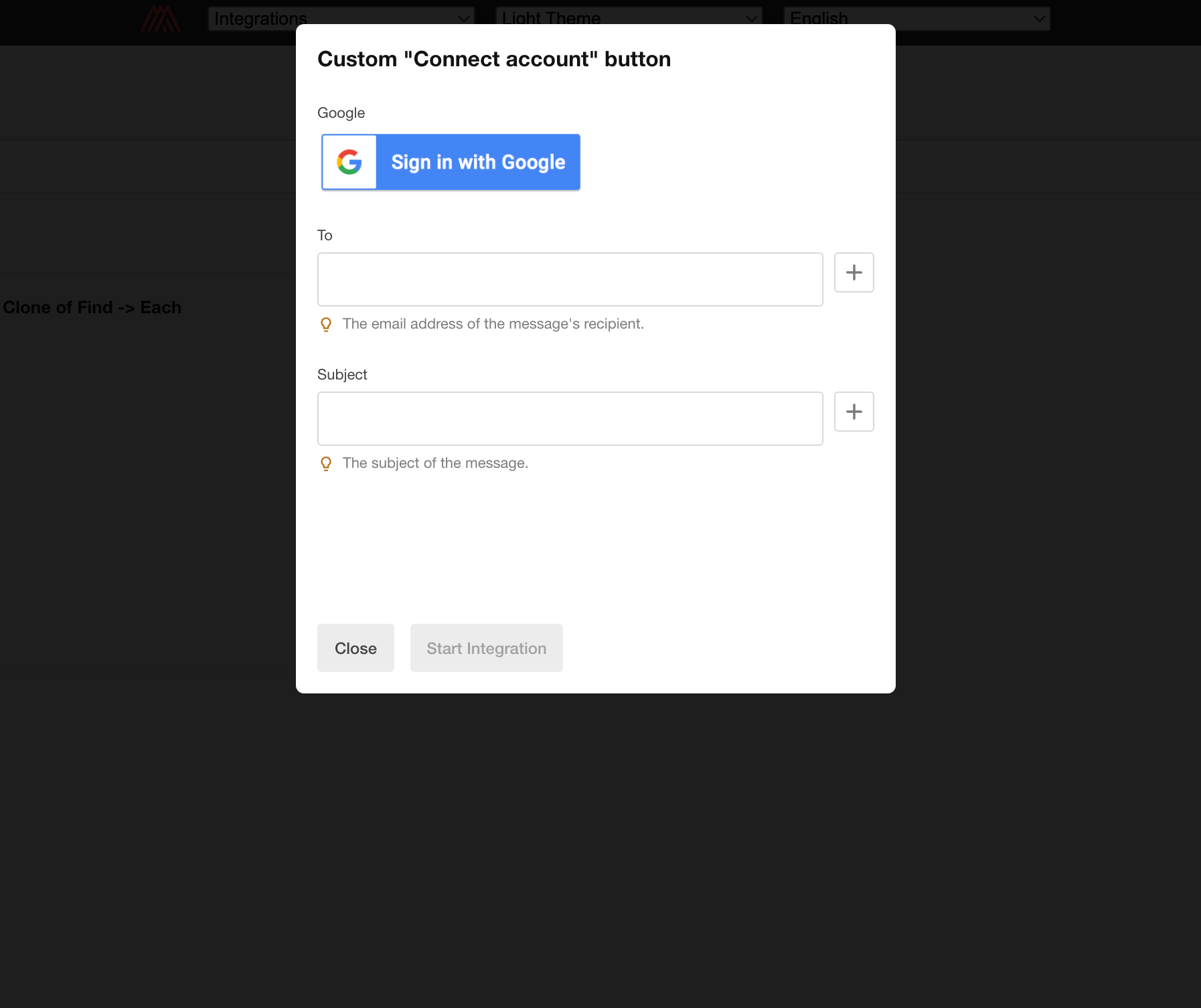 <figure><img src="https://3844357853-files.gitbook.io/~/files/v0/b/gitbook-x-prod.appspot.com/o/spaces%2FLWWF0gTSzvFs1o4Cs6Tm%2Fuploads%2F2jQ0Gzh9ZG0RrfZTiIha%2FCustom__Connect_account__button_in_Inspector_Wizard_%C2%B7_Issue__3276_%C2%B7_clientIO_appmixer-fe.png?alt=media&#x26;token=9c041f90-8e52-455e-b74f-c07a5ffffc58" alt=""><figcaption><p>Custom "Connect account" button in the Designer.</p></figcaption></figure>