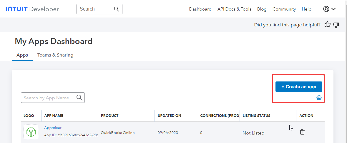 go to the <https://developer.intuit.com/app/developer/dashboard> to create a new app