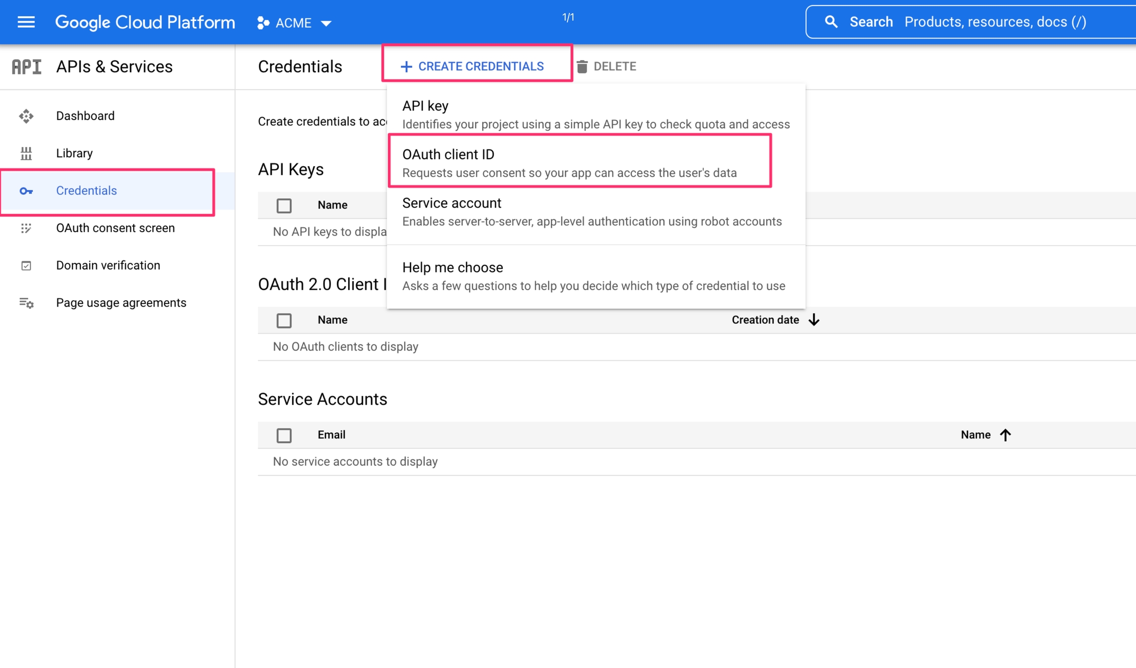 Go to the Google developer console at https://console.developers.google.com/ and create a new project.