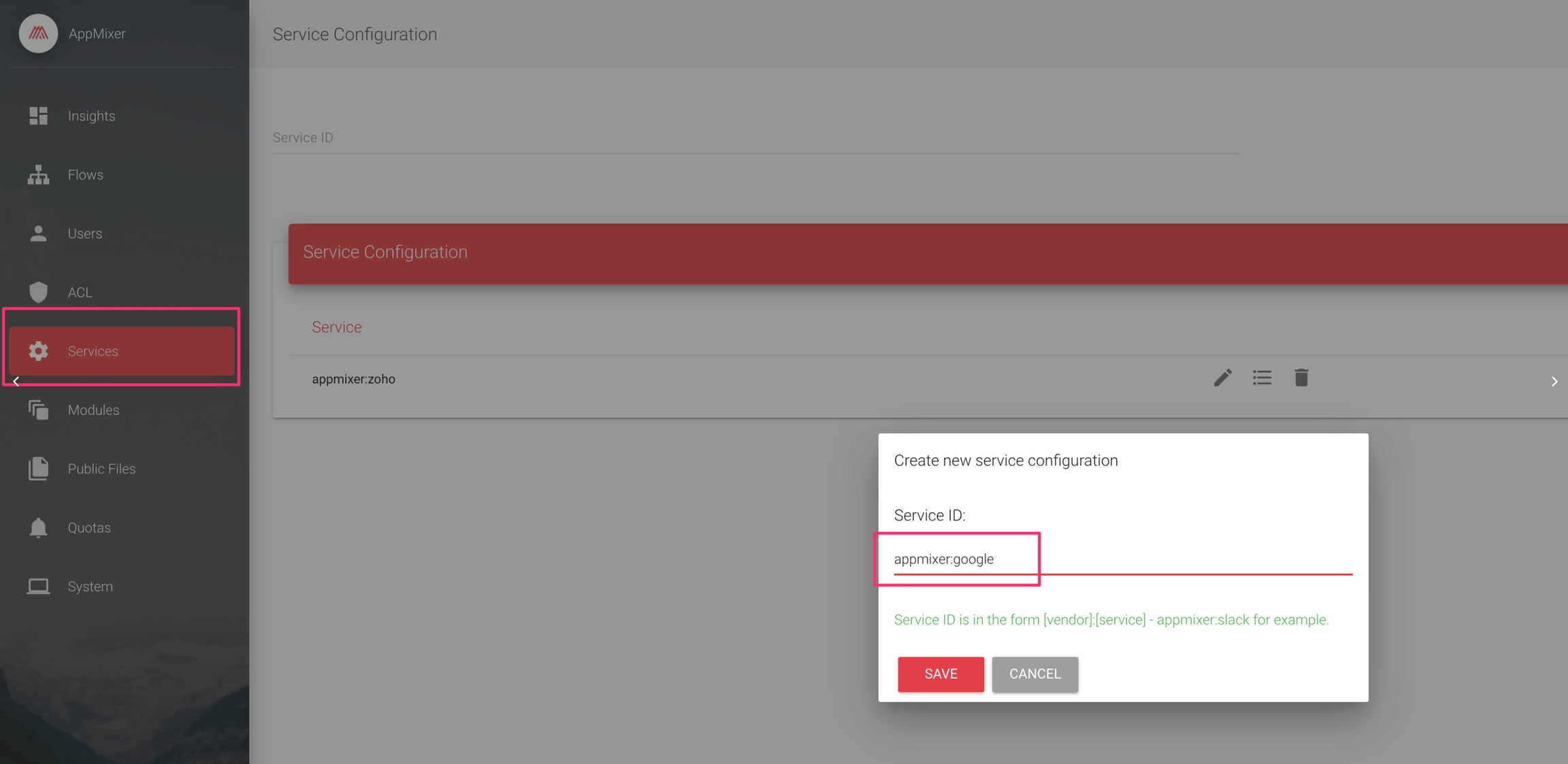 By default the callback URL passed to Google is in the form of <your-api-url>/auth/appmixer:google/callback. However in some cases, you could need to pass a different callback URL. You can do this by inserting a callbackUrl value in the service configuration:
