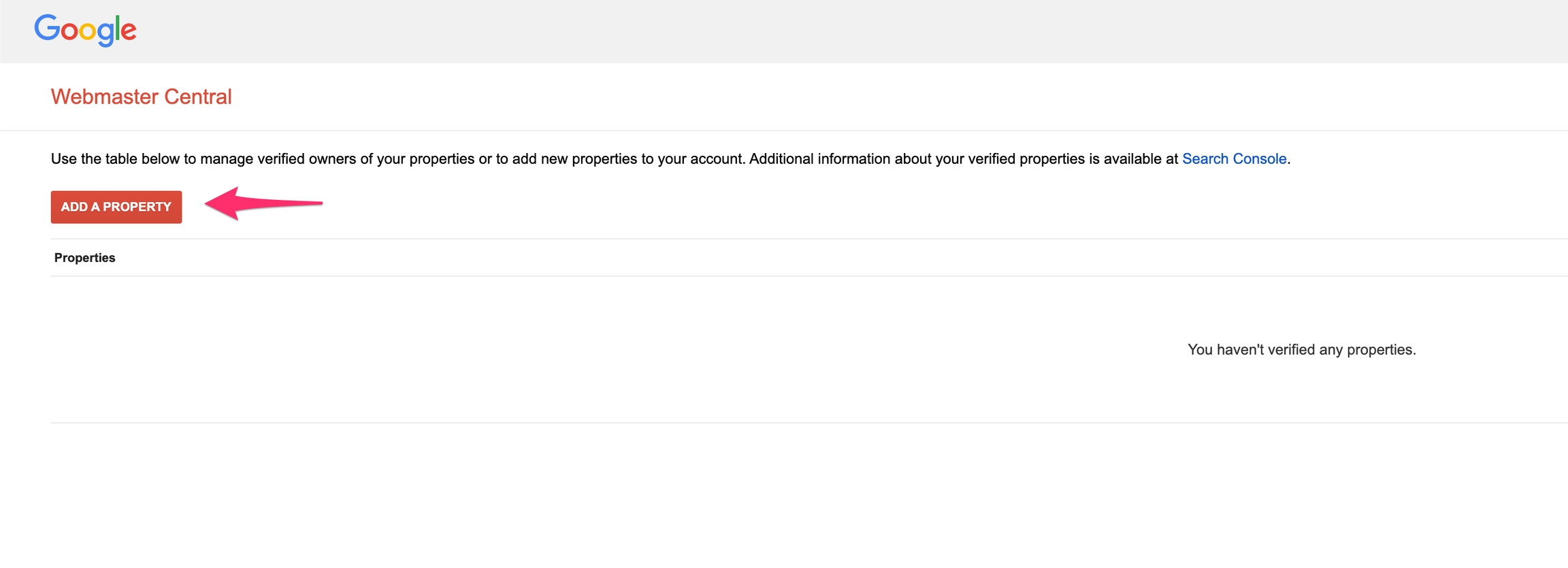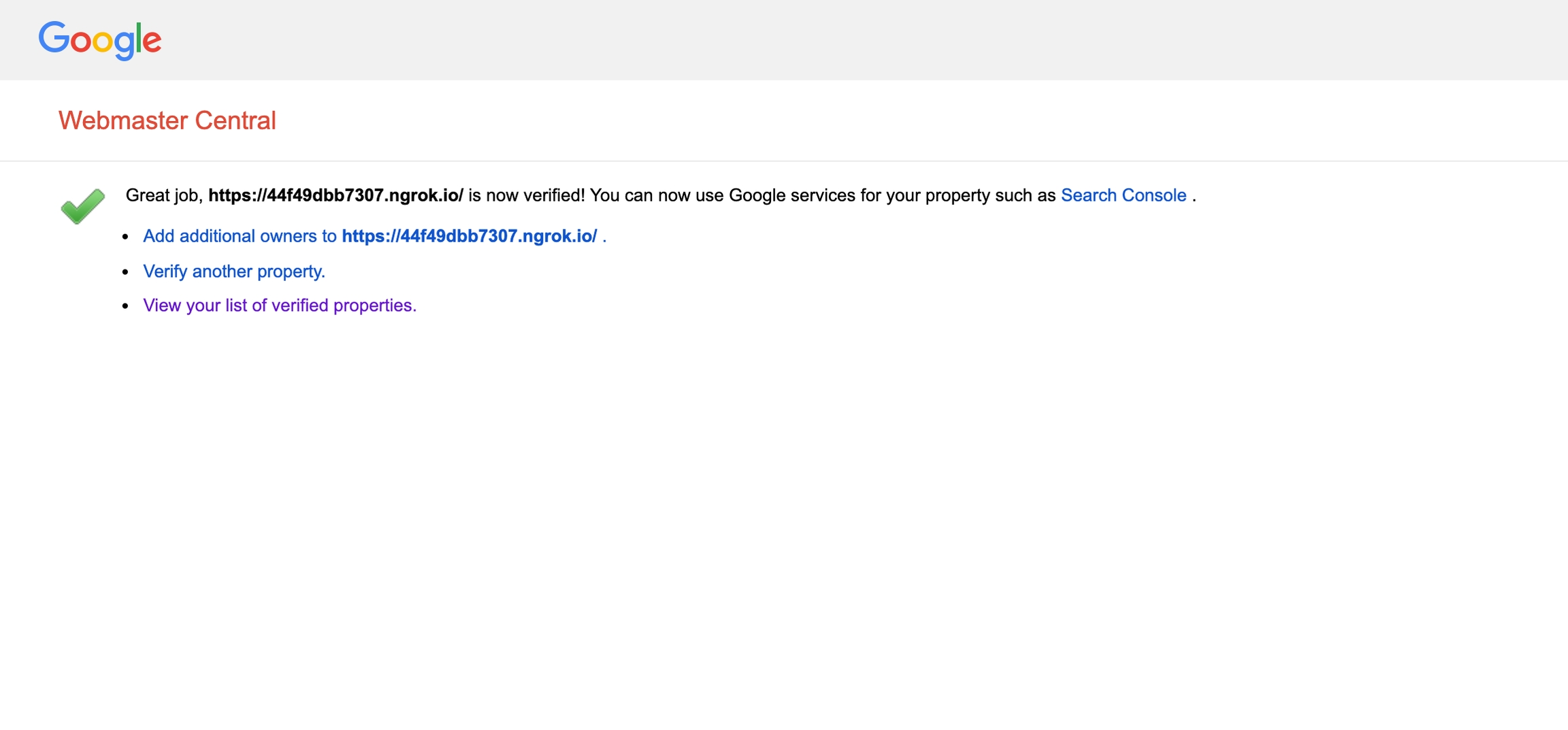 Add your Appmixer tenant API URL (api.YOUR_TENANT.appmixer.cloud) and continue to verify the domain ownership. Click 'Take me there' and then 'Add a property'.