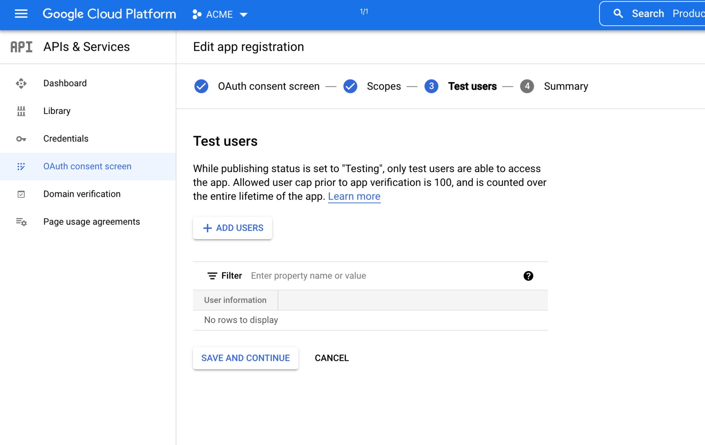 You can add test users, but you can do this later. Only users added as test users will be able to authenticate!