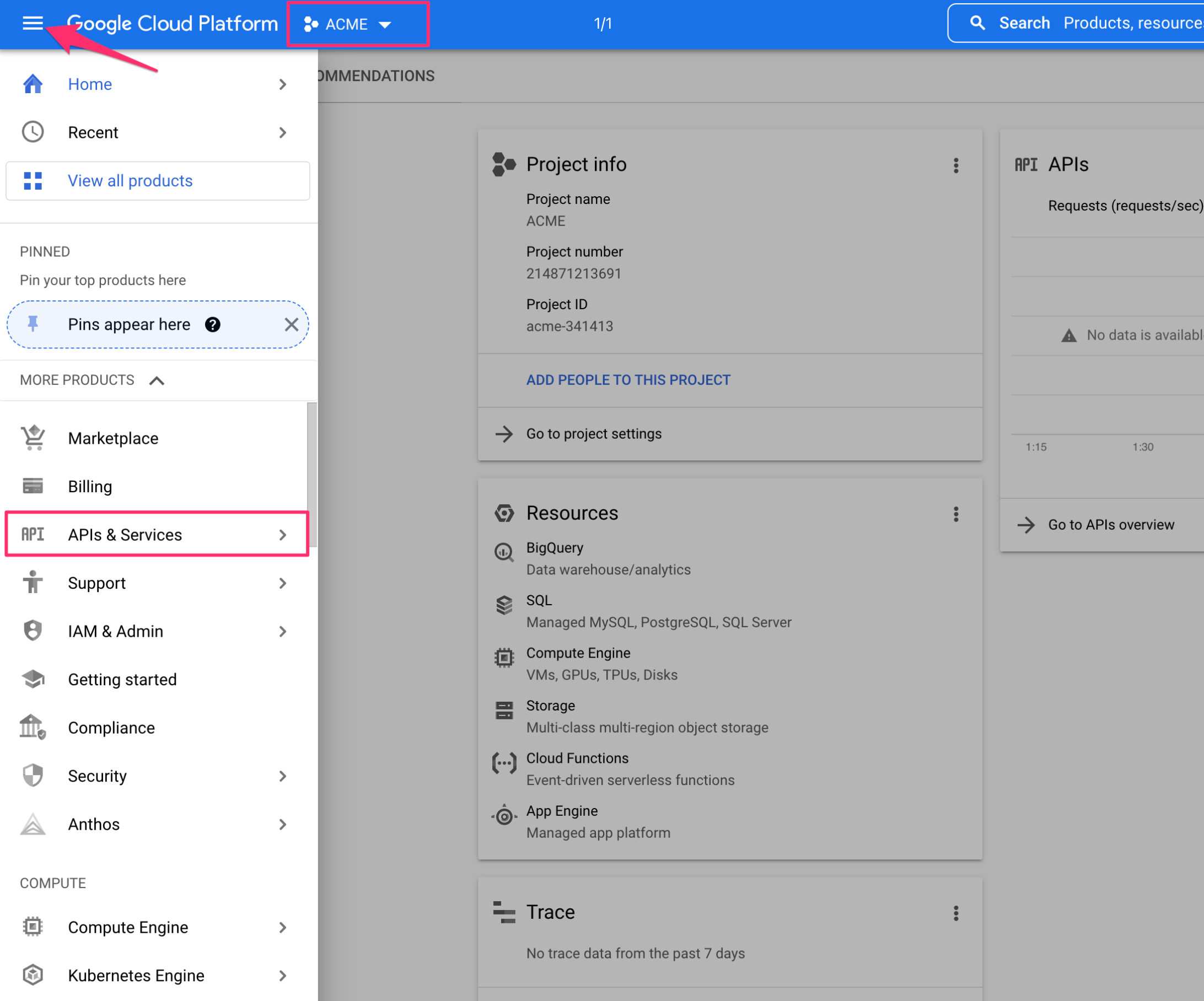 First, open the Google developers console and your Appmixer project and follow the instructions in the next picture.