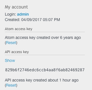After that, you will need to create a new API key. Go to Administration -> Users -> Edit user and create a new API key.