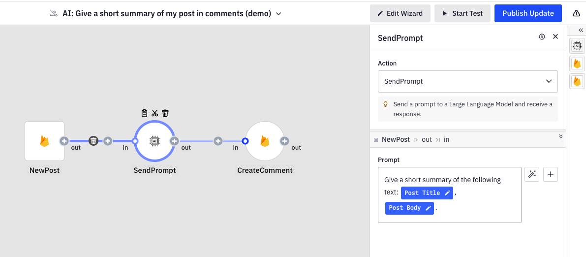 Additionally, you can also override the default OpenAI models for the `SendPrompt` (default is `"gpt-4o"`) and `GenerateImage` (default is `"dall-e-3"`) components:<br>