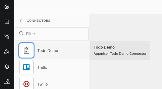 You should now be able to see the "Todo Demo" connector in the left panel of the Designer UI: