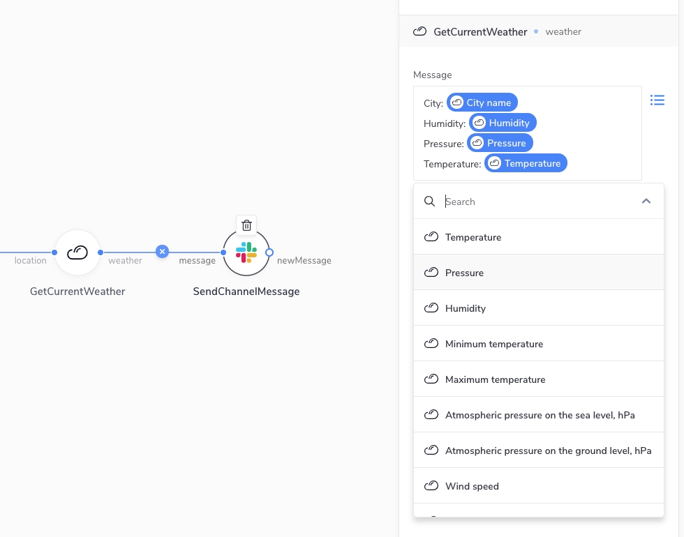 output port of our GetCurrentWeather component can see the following variables in the variables picker:
