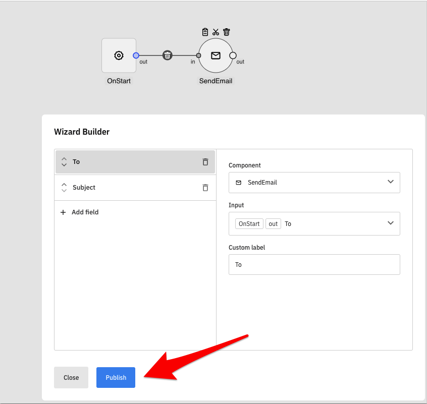 Now that we have created a new virtual user, defined and configured a custom scope, we can take advantage of this new scope not only to limit the set of available components for users in this scope but we can also share Integration templates with only users under a certain scope. By default, integration templates are shared with the user scope. This happens when you publish a new integration template in the Wizard builder:
