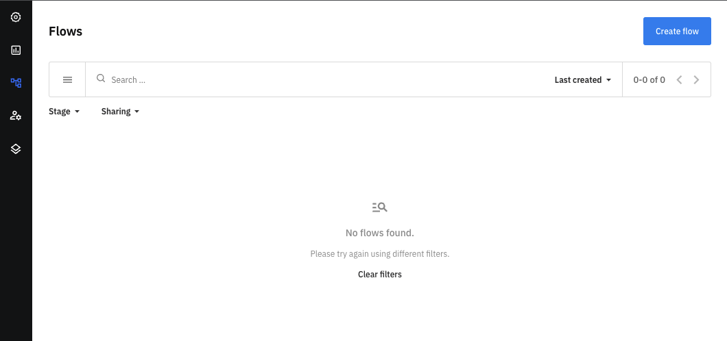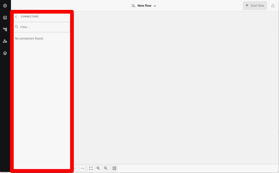 Also notice that if you try to create a new flow on behalf of the user by clicking on the "Create flow" button, the list of available modules will be empty: