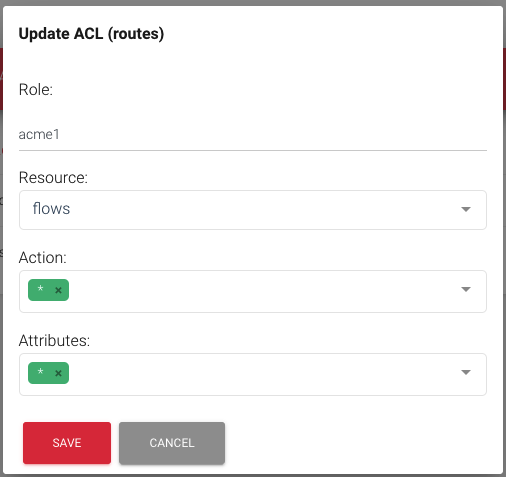 Since our acme1 scope is not in this list (look for the role attribute), we can add a new rule that allows users with this scope to access their flows: