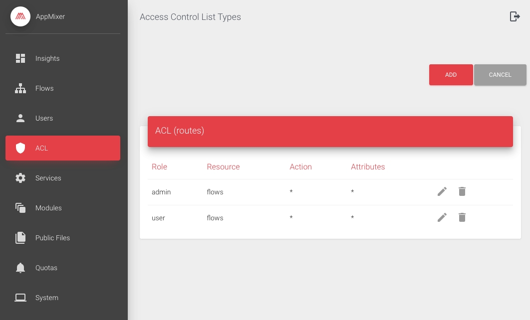 Or programatically via the Appmixer REST API. A common practice is to first get the existing set of ACL rules for the routes category and if the newly created scope is not in the list, just add it (note again that you need admin user token to manipulate ACL rules):