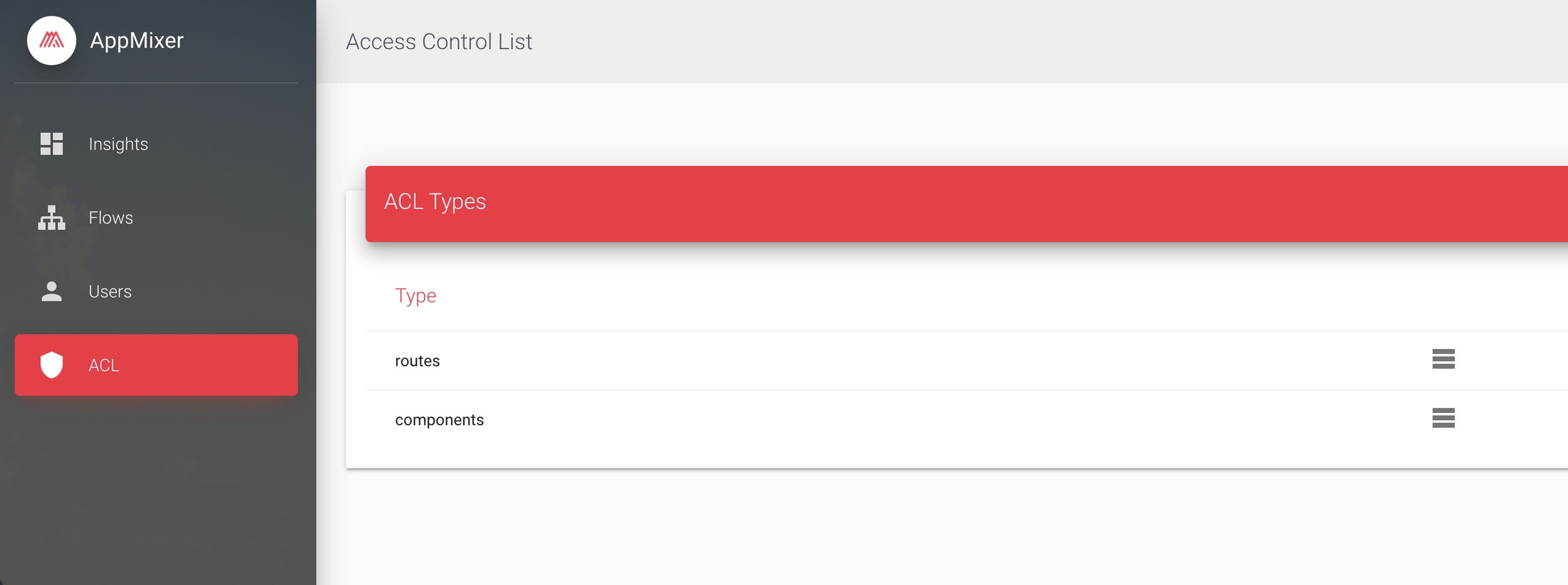 If you open Appmixer Backoffice, you can see an ACL section in the left menu under the "System" menu. You can then choose between settings for routes and components.