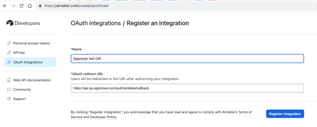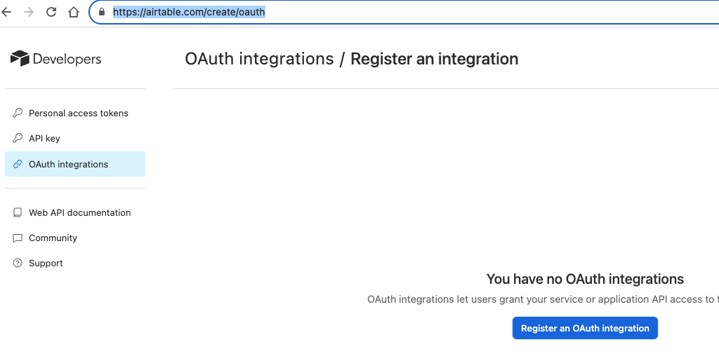 Now the Airtable workspace/base is prepared. Let's configure the OAuth app.