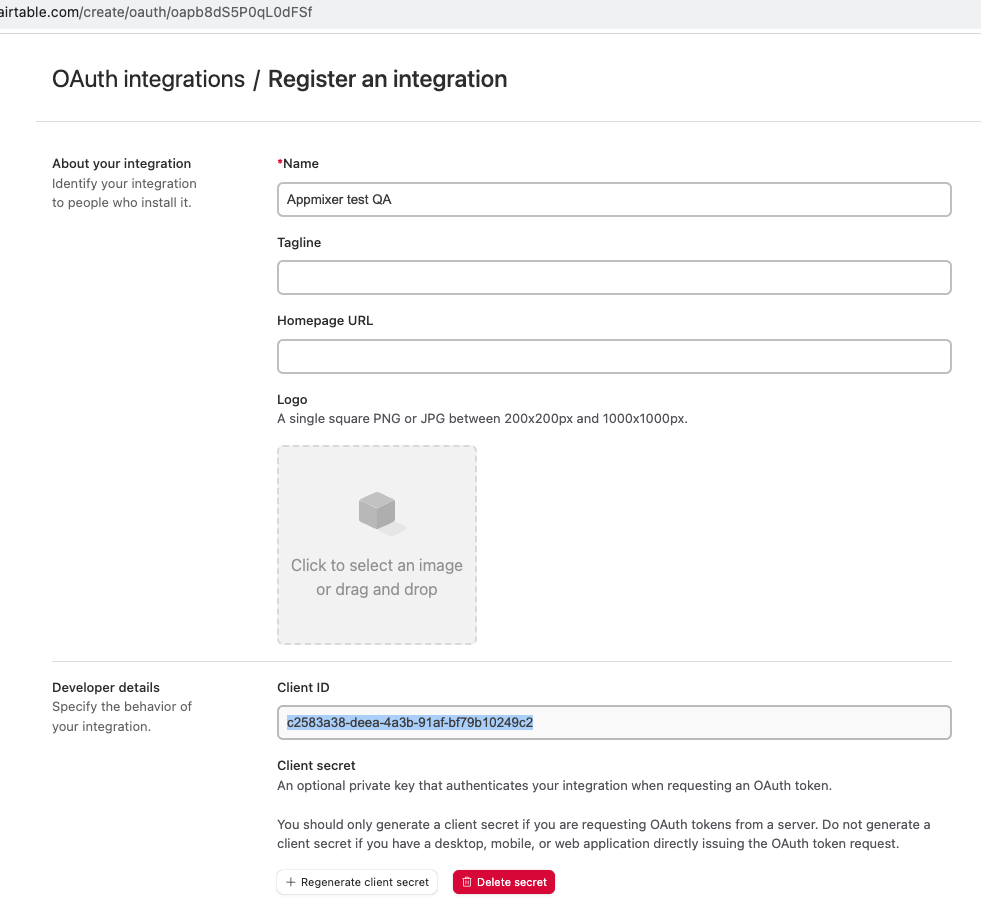 The last step is to configure clientId and clientSecret in the Appmixer Backoffice for appmixer:airtable