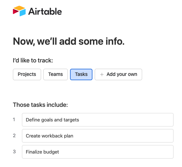 Airtable workspace created