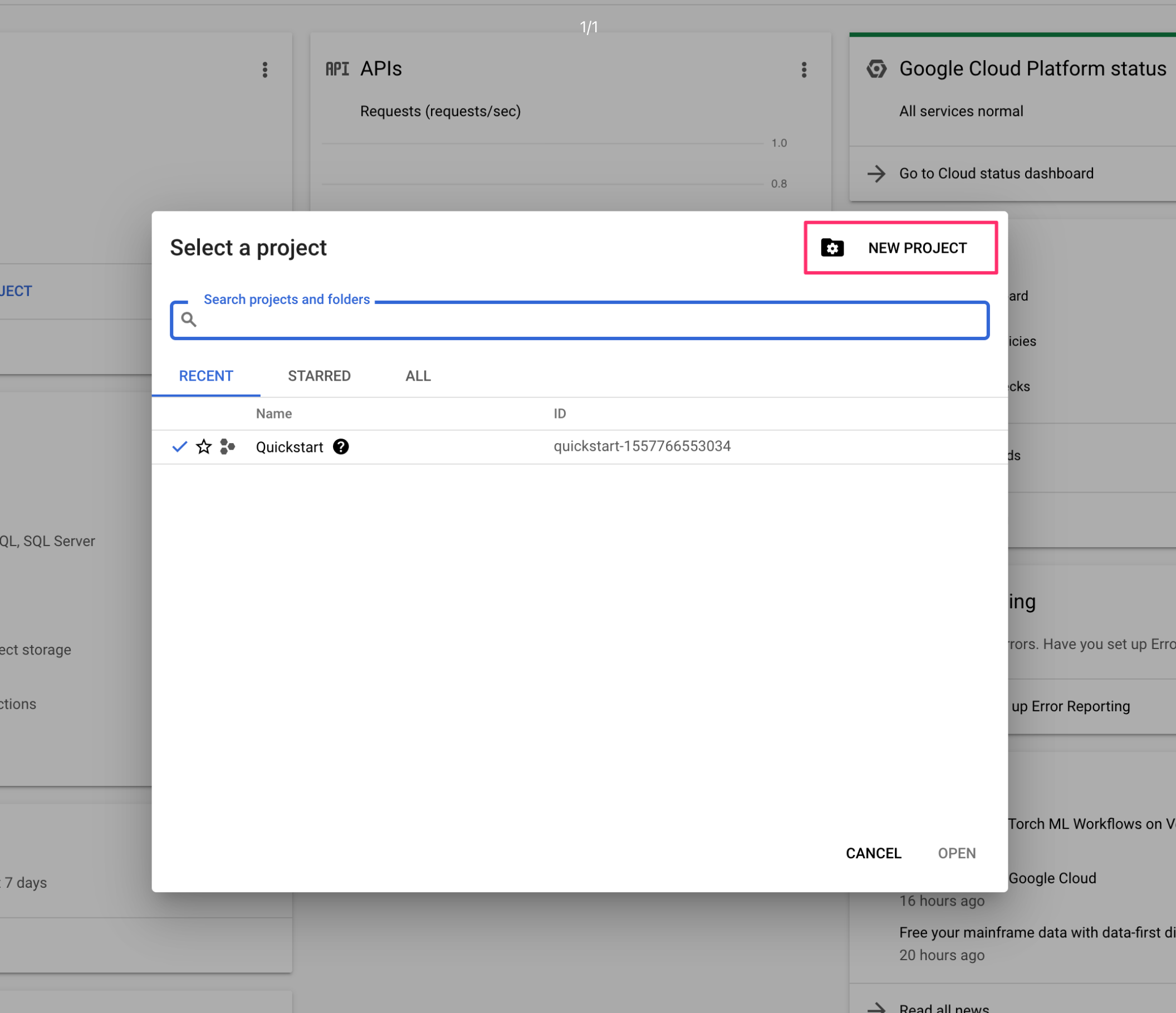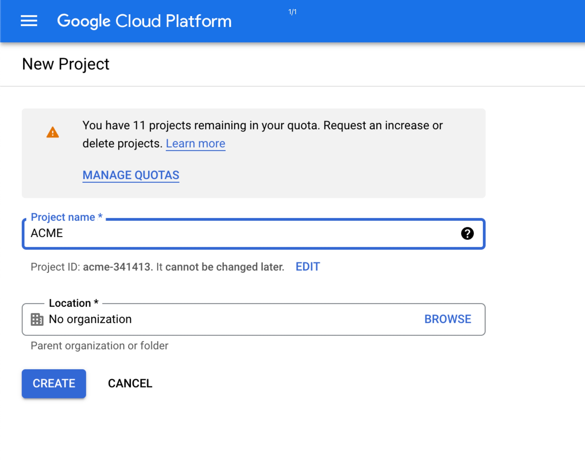 Go to the Google developer console at https://console.developers.google.com/ and create a new project.