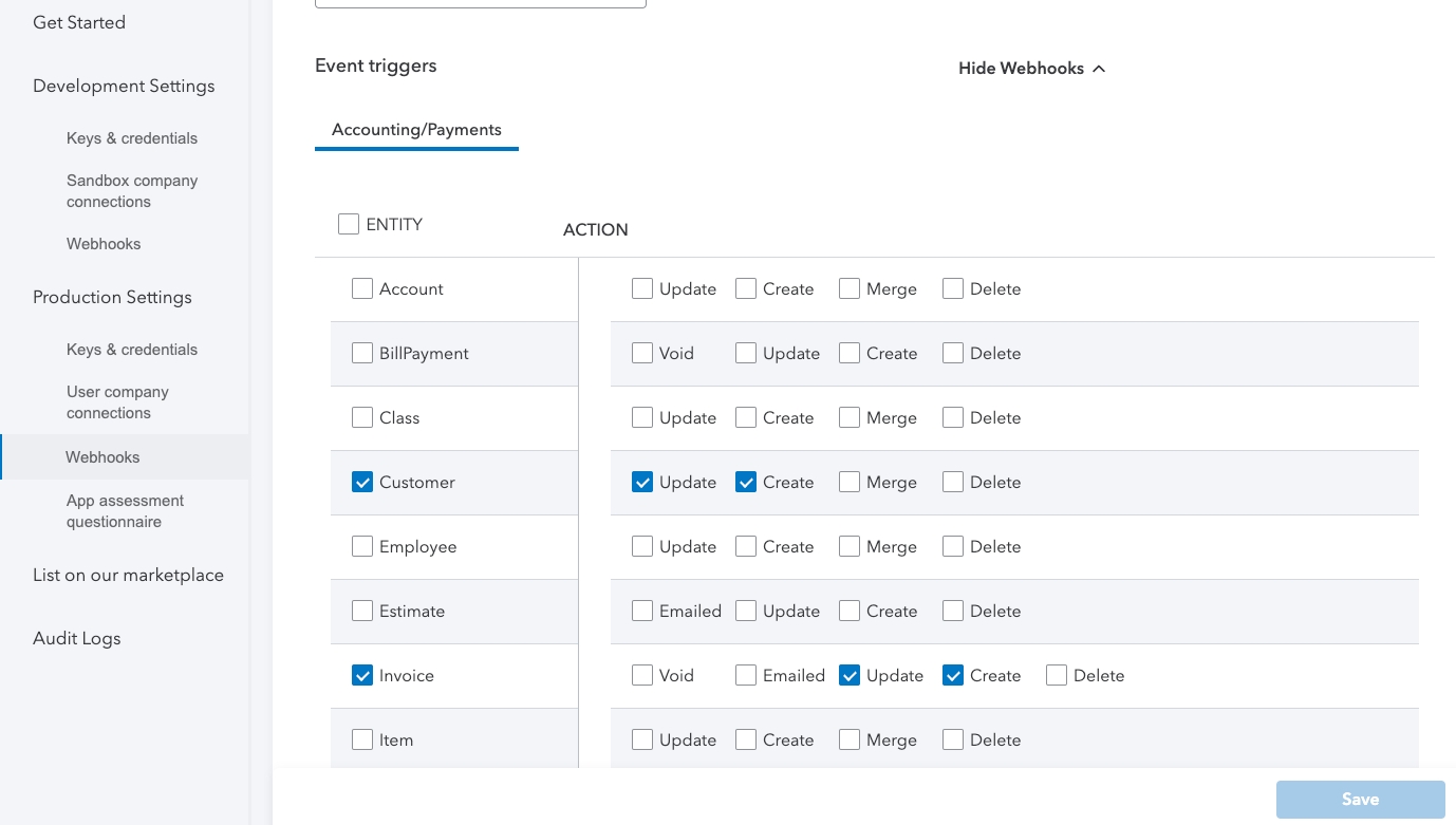 ) use QuickBooks webhooks. In order to use this component(s) in Appmixer, you have to register Appmixer's QuickBooks URI in QuickBooks first and set the webhook key in the Appmixer BackOffice.