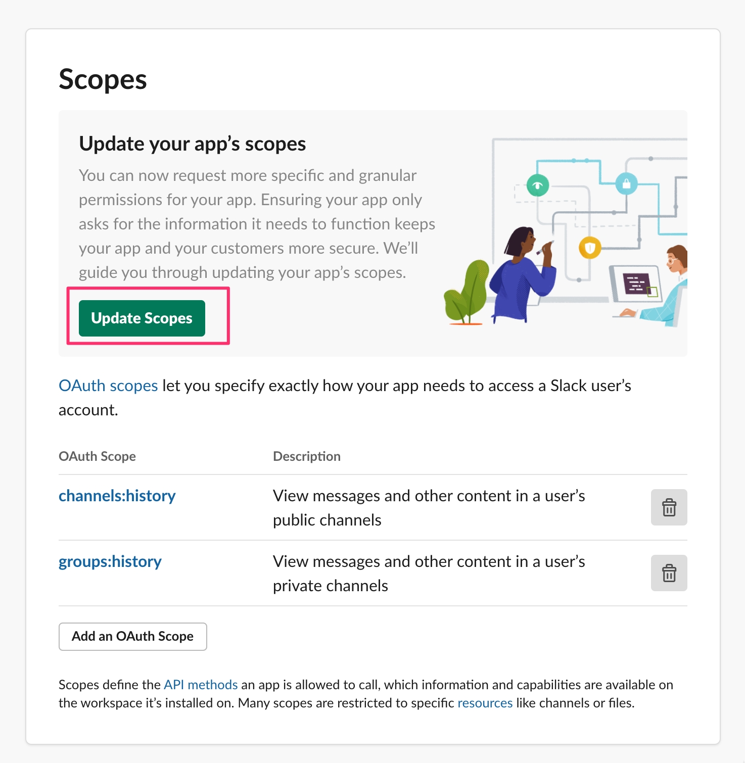 Then scroll down to Scopes and hit the Update Scopes button.