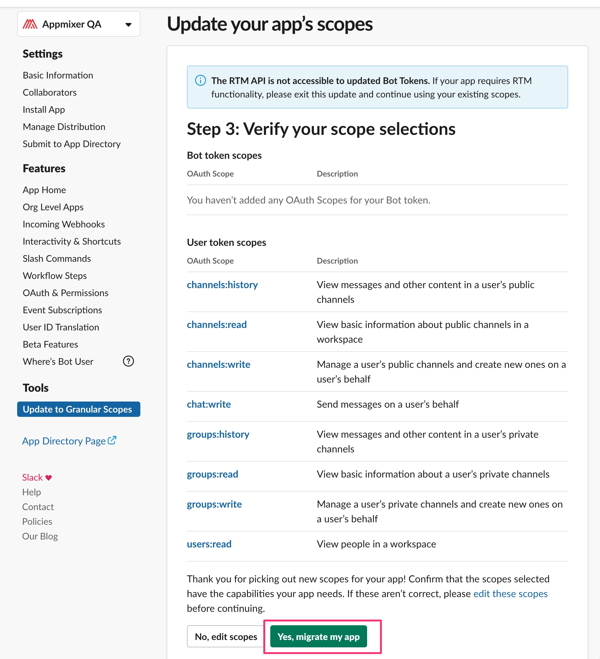 Verify the scopes and migrate the app.