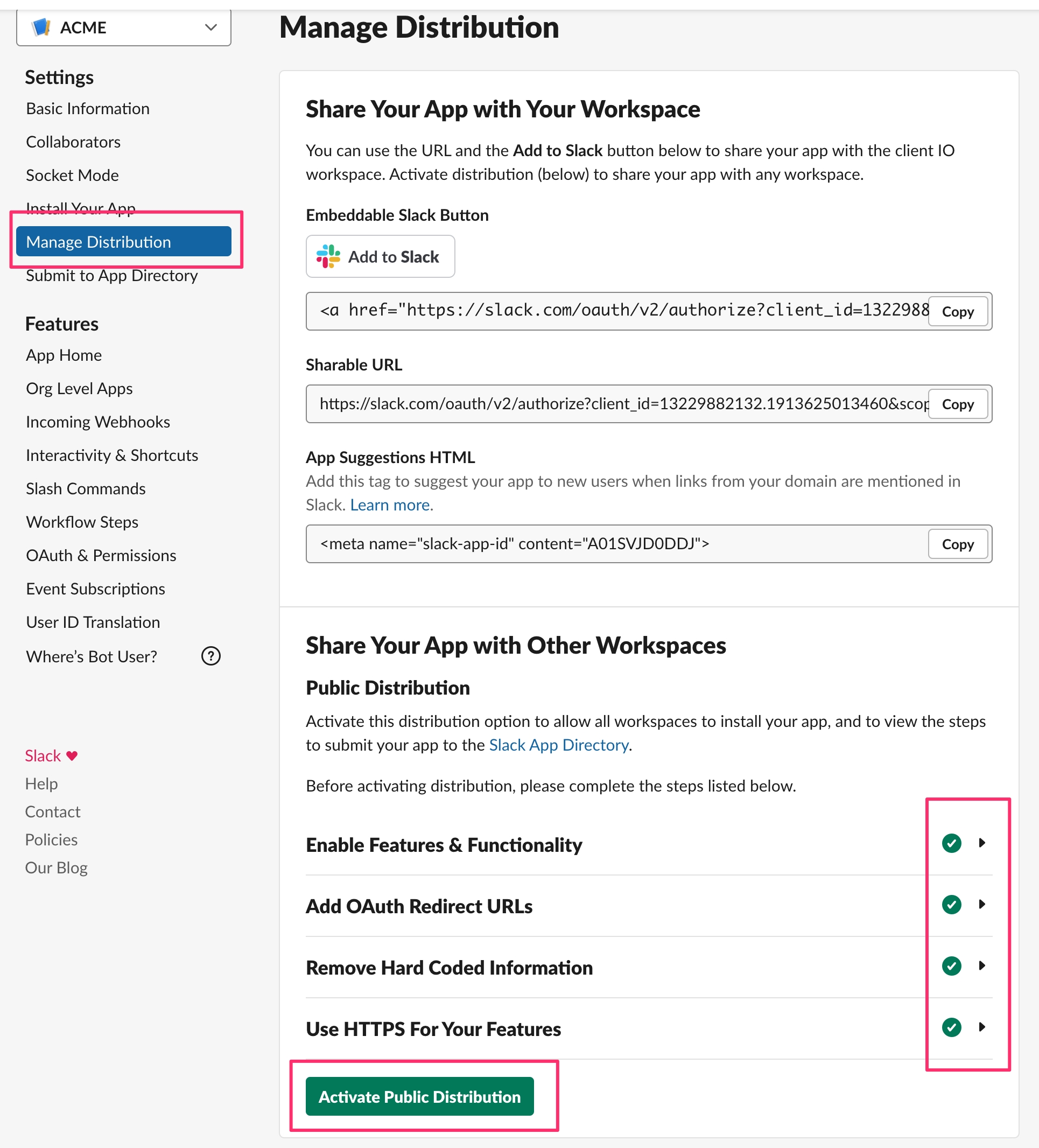 Go to https://api.slack.com/apps then choose your Appmixer app.
