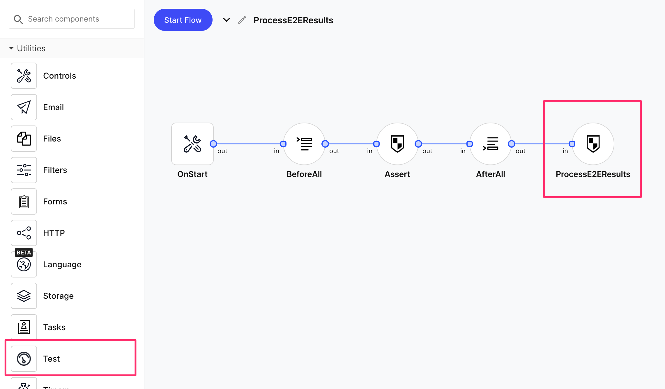 Appmixer contains components that we use to test components. You can use them to test your own custom component. There is a ProcessE2EResults component which sends result from a test run (flow run) into a predefined list of email addresses.