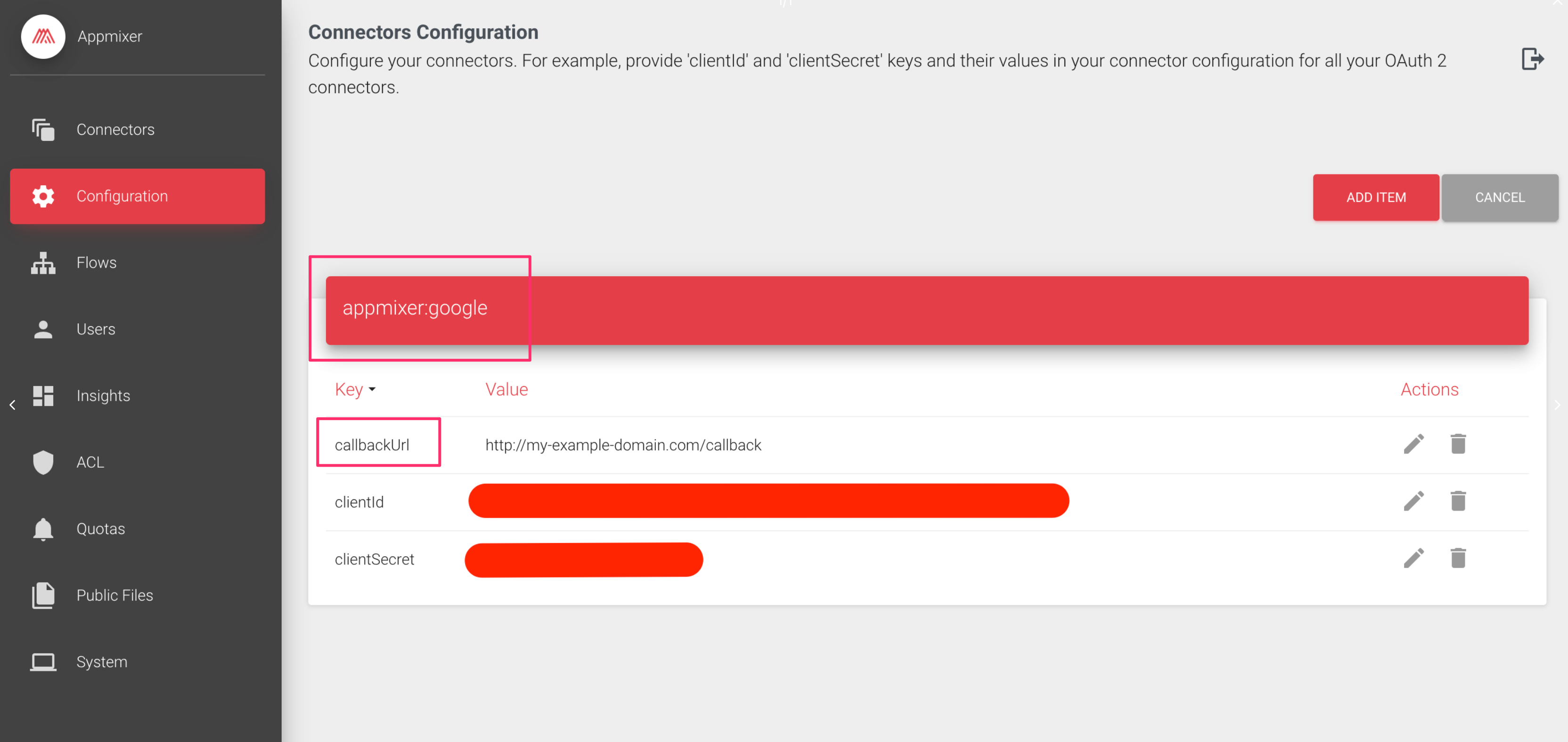 To set your OAuth applications secrets, follow the [Connector Configuration](https://docs.appmixer.com/getting-started/services#custom-oauth-credentials) guideline.