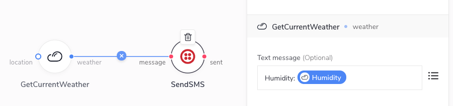 Components are implemented as NodeJS modules that return an object with a set of methods (Component Virtual Methods) that the Appmixer engine understands. Let's start with a simple example, a SendSMS component that has one input port (message), no output ports and its purpose is to send an SMS using the Twilio API.