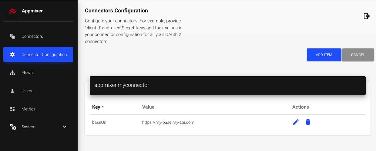 When you configure your connector in the Backoffice, you can access the values in the context.auth or context.config objects. context.config is an alias to the original context.auth. This is especially handy for any configuration that you might want to have dynamically changed without the need to redeploy your connector with new configuration.