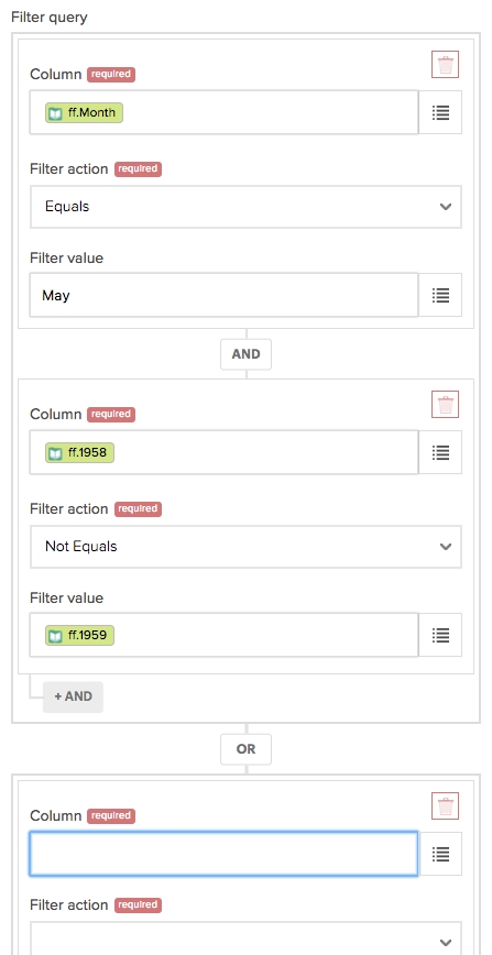 The when field has the following structure: { op: { field: comparisonValue }}