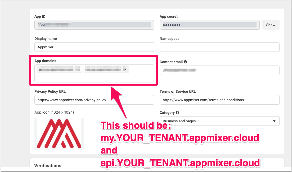 4. Add your Appmixer tenant domains as your **App domains**:\\