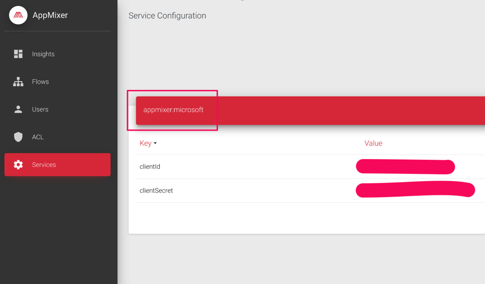 This is the *clientSecret,* the Microsoft *Secret ID* is the Appmixer *clientId.* These secrets need to be added into the Backoffice: