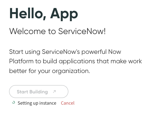 Now your developer instance is ready and accessible: <https://dev180380.service-now.com/>. Note that when creating a new account, your instance ID (`dev180380` in this case) will be different.