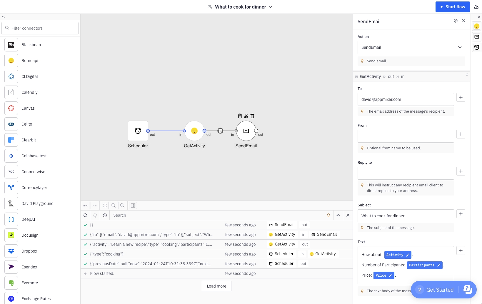 Finally, we can set up an automation that sends us an email every day at 17:00, providing ideas for cooking activities: