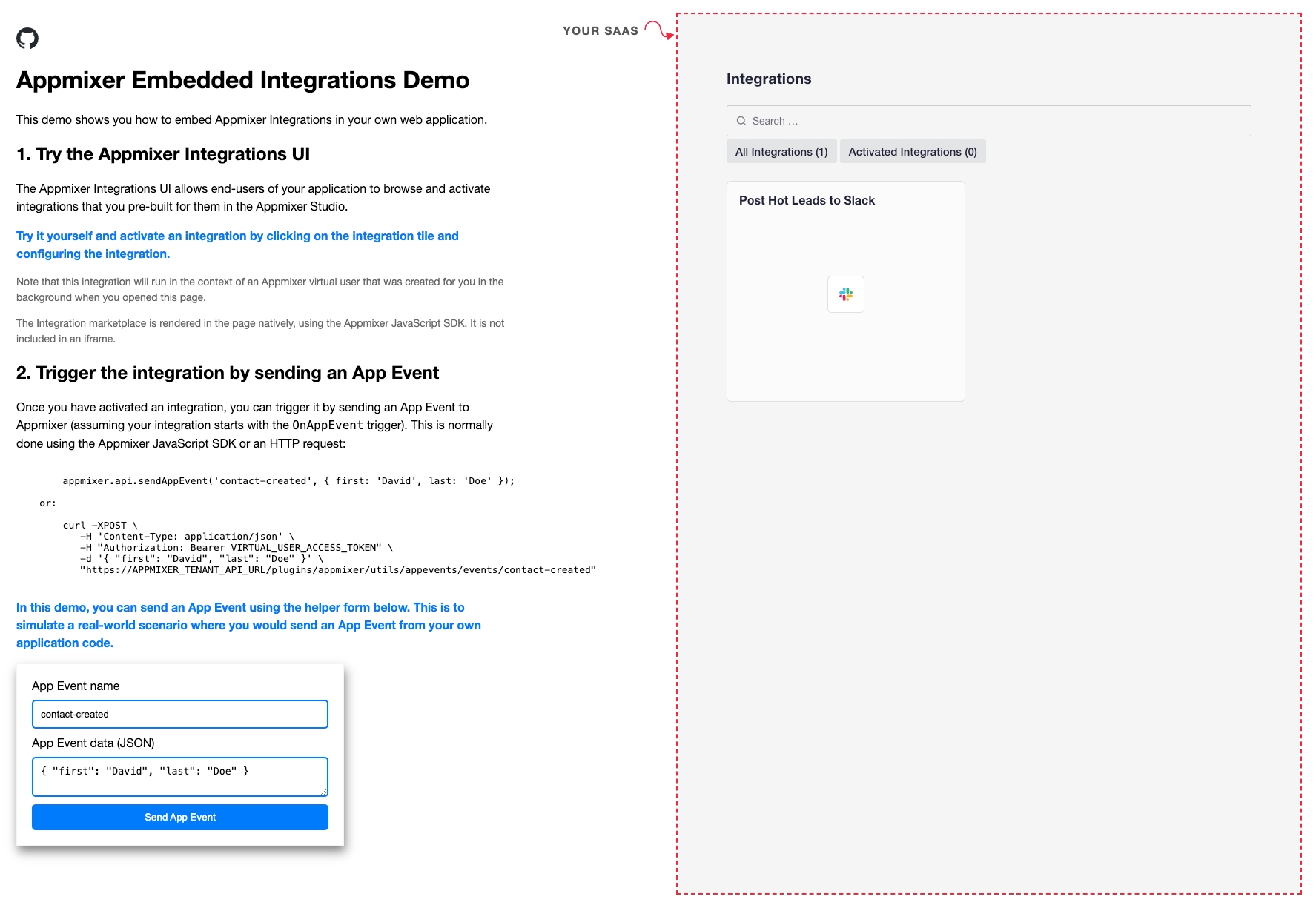 Alternatively, go to our demo web app, which also allows you to preview how your embedded integration marketplace will appear in your app once the actual embedding is completed.