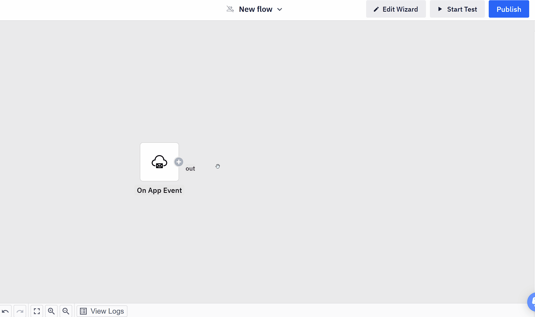 Next, add the Condition component to your flow. Do this by clicking Add Step on the right side of the On App Event component. Then type in "condition" and select it.