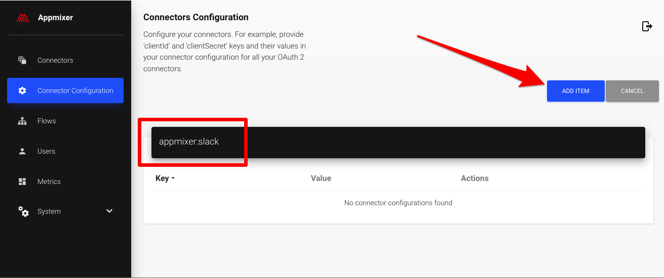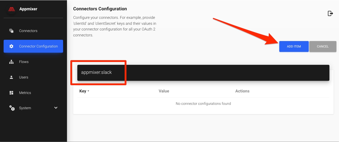 For the Configuration ID, use appmixer:slack. You are now ready to add the Slack OAuth app clientId and clientSecret.