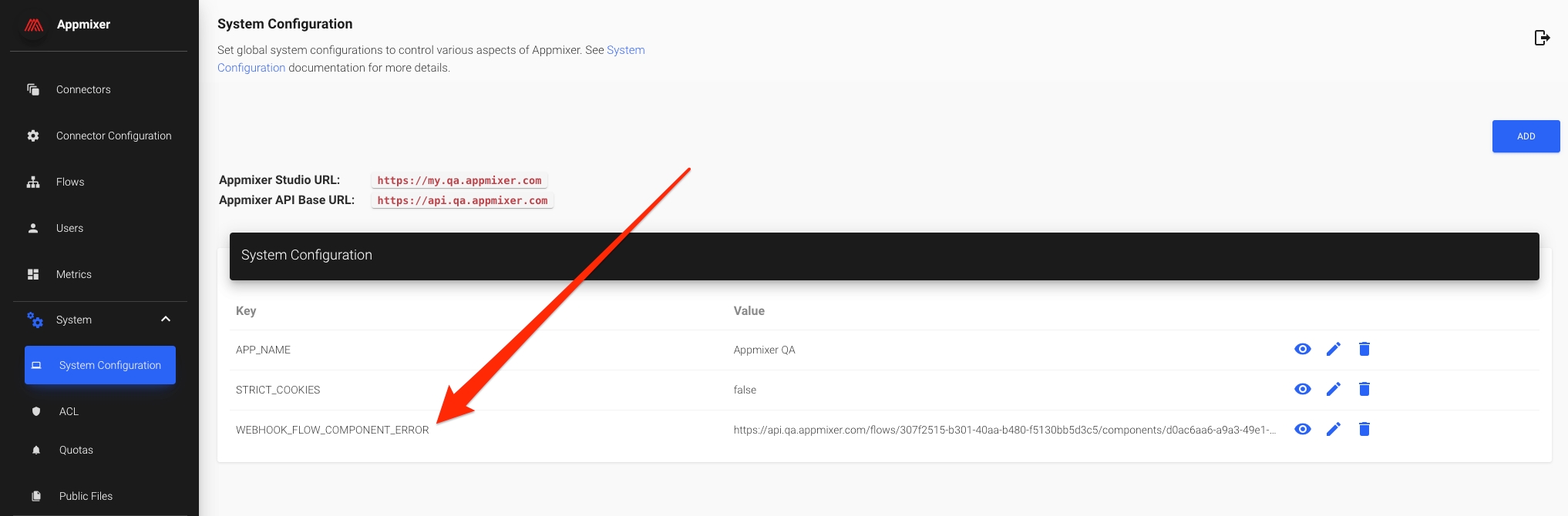 system variable with a custom URL in the Appmixer Backoffice interface. Appmixer will then send an HTTP POST request to this URL each time an error occurs in a flow, enabling you to respond or notify as necessary based on the error details provided. This setup provides a streamlined way to monitor and address issues in real-time.