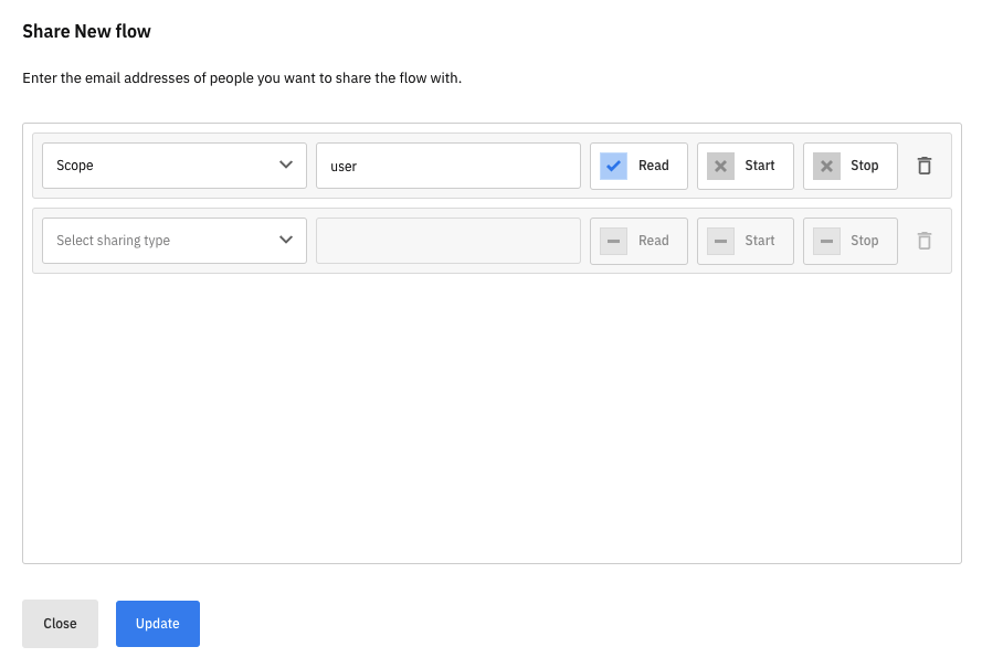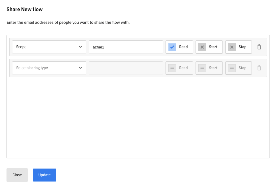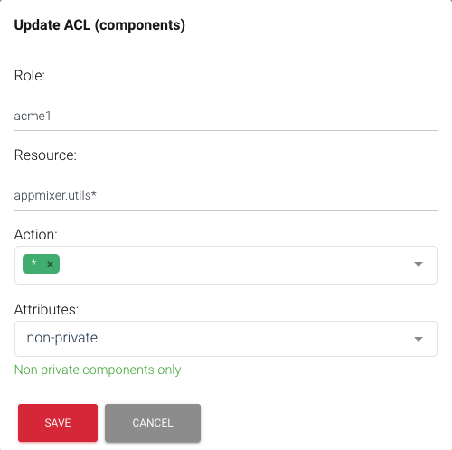 Or programatically via the Appmixer REST API. A common practice is to first get the existing set of ACL rules for the routes category and if the newly created scope is not in the list, just add it (note again that you need admin user token to manipulate ACL rules):