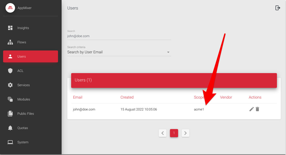 Again, you can validate in the Appmixer Backoffice that the user's scope has indeed changed: